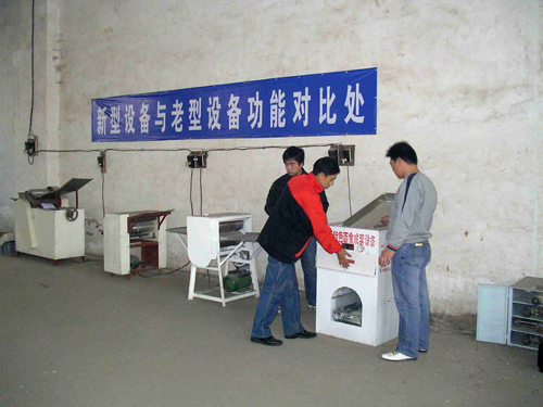 南陽客戶實地考察更換自動疊片燴面機南陽客戶實地考察更換自動疊片燴面機 南陽馬老板在10年前就開始做燴面片批發,最早用的一品鮮Hmj-3型設備,經過10年的辛苦經營,目前每天做面30多...[了解詳情]